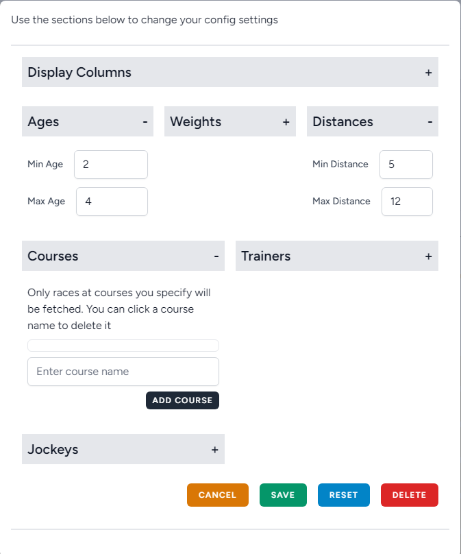 Once you have your racecard spreadsheet, you can filter it using the built-in system-building interface, applying specific criteria to find only the runners that meet your exact requirements.